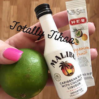 I made the above water mixer - HEB brand Passion Fruit ( this is also available in 2 quart mix), if you don't have HEB grocery store close to you I would bet any favorite mixer would work. I added a small bit of fresh squeezed lime and then topped off with Malibu Rum ( how much is up to you). To make it look more festive and fun I threw in sliced oranges, strawberries and limes. Then put all pouches in freezer, took out when ready to enjoy.